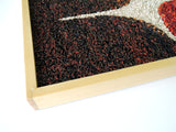 This abstract 3D artwork has a very stunning appeal and gives a new appearance from different angles. Made from over 45000 hand-painted sticks of corrugated cardboard cut in various sizes, each pasted one at a time in a wooden enclosure to create this beauty. The more you look at it the more interesting it becomes.