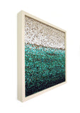 About 15000 pieces have been used to create this sculpture, each pasted one at a time in a hand-painted wooden enclosure/frame to create this beauty. The frame is painted unbleached titanium with a raw finish to complement the artwork. The more you look at it the more interesting it becomes. I try to create artworks that are vibrant and creative so that they are everlasting, bring happiness and cheer to the viewer and spread positives vibes in the room where these are hung. The outer dimensions including the frame are 17.95x17.95x1.7 inches.