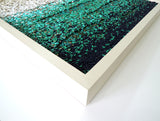 This abstract 3D artwork has a very serene appeal and gives a new appearance from different angles. Made from small sticks of corrugated cardboard, hand painted and cut in different sizes.
