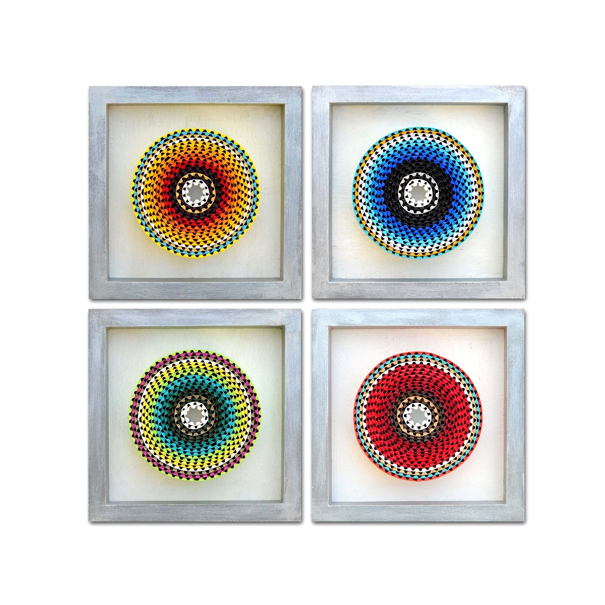 A coat of clear lacquer has been applied on the wheels for long life. The artworks are fitted with saw tooth hangers and are ready to hang.